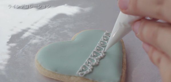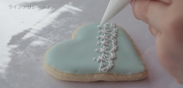 ラインデコレーションはいくつかの基本的なラインの組み合わせにより様々な種類を描くことができるので、お好みのレース模様などをクッキーに施していきましょう。